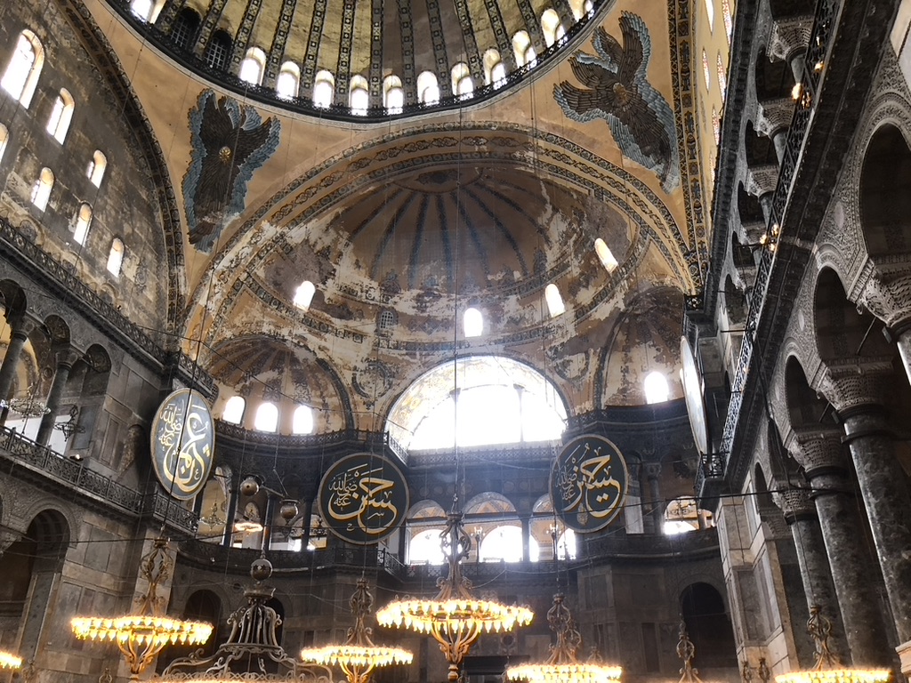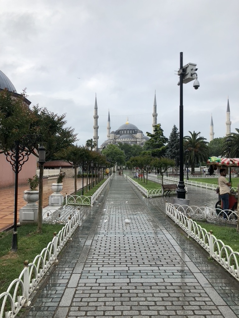 I had decided that today would be the day that I tackled the insane queue for the Hagia Sofia. Since being re-converted into a functioning mosque in 2020, entry is free, but it does involve a long, long, stretch of queueing. However, once I was inside, I decided almost immediately that it was worth it. The Hagia Sofia is utterly immense, incredibly ancient, and is filled with a mixture of old Christian murals from its time as a Byzantine church, and Islamic artwork from its period as a mosque. Giant chandeliers hang down from the ceiling, and the light catches on the gold of the Islamic decorations on the walls, creating a beautiful scene.