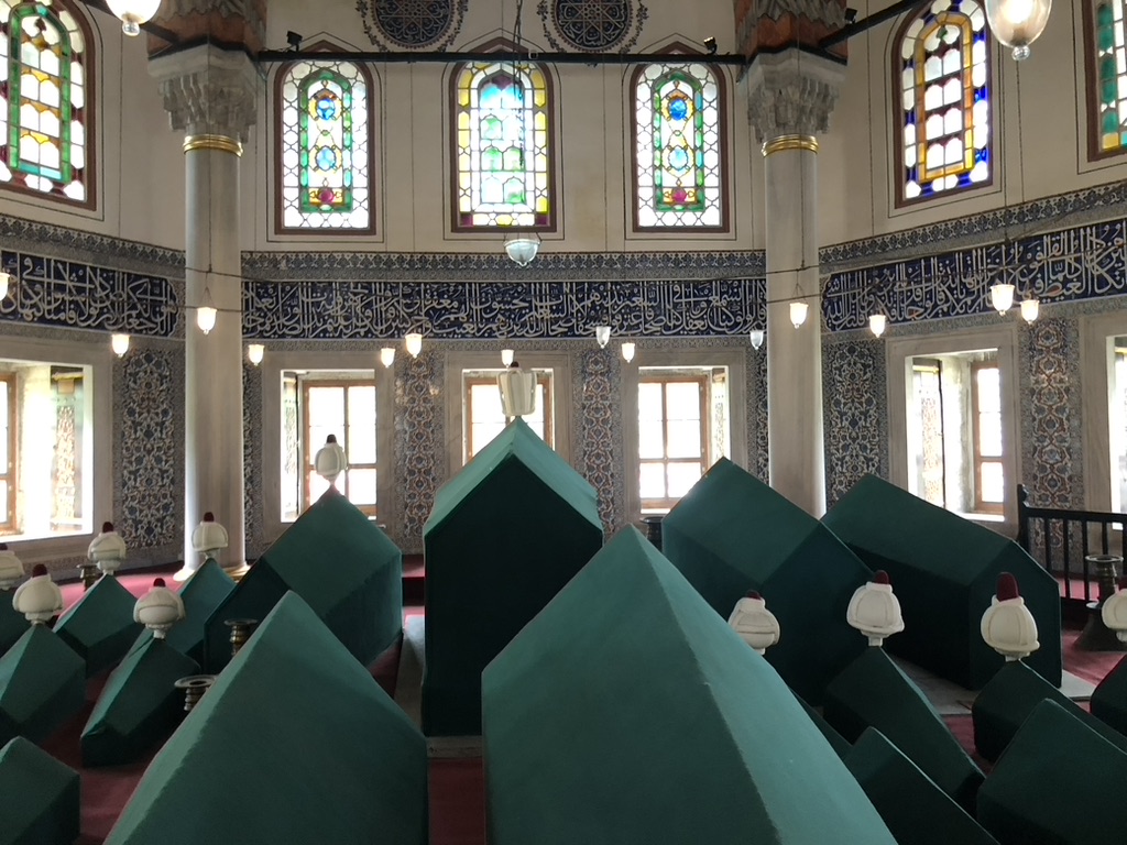 Outside the Hagia Sofia, in the grounds, are the tombs of several Ottoman Sultans and their families. The eerie coffins, covered in the same green shrouds, were topped off with the royal headpieces that each wore.