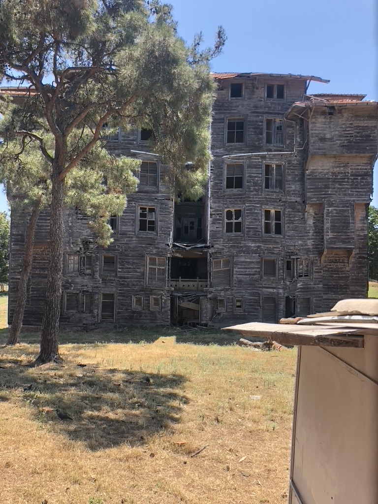 I had dedicated the next two days to day trips out of Istanbul. The first of these was to one of the Princes Islands, Büyükada, off the coast of Istanbul. I made my way to the ferry terminal on the other side of the Galata bridge, and caught the ferry (which works with IstanbulKart!) to the island, about a 1.5 hour boat ride away. The water was smooth, and the weather pleasant, so I sat out on the deck and watched the view, talking with an Iranian couple who found themselves next to me. Finally, after stopping at various other islands along the way, we docked at Büyükada, and I made my way off the ferry. The Princes Islands are almost entirely car-free, and so most people get around by walking, cycling, or electric mopeds. I decided to walk, planning on taking a hiking trail up the slope of the island, intending on finding an old monastery and an abandoned orphanage. I walked for around 3 hours, stopping off occasionally to admire the view, and stumbling across some interesting buildings, such as a crumbling, abandoned house.