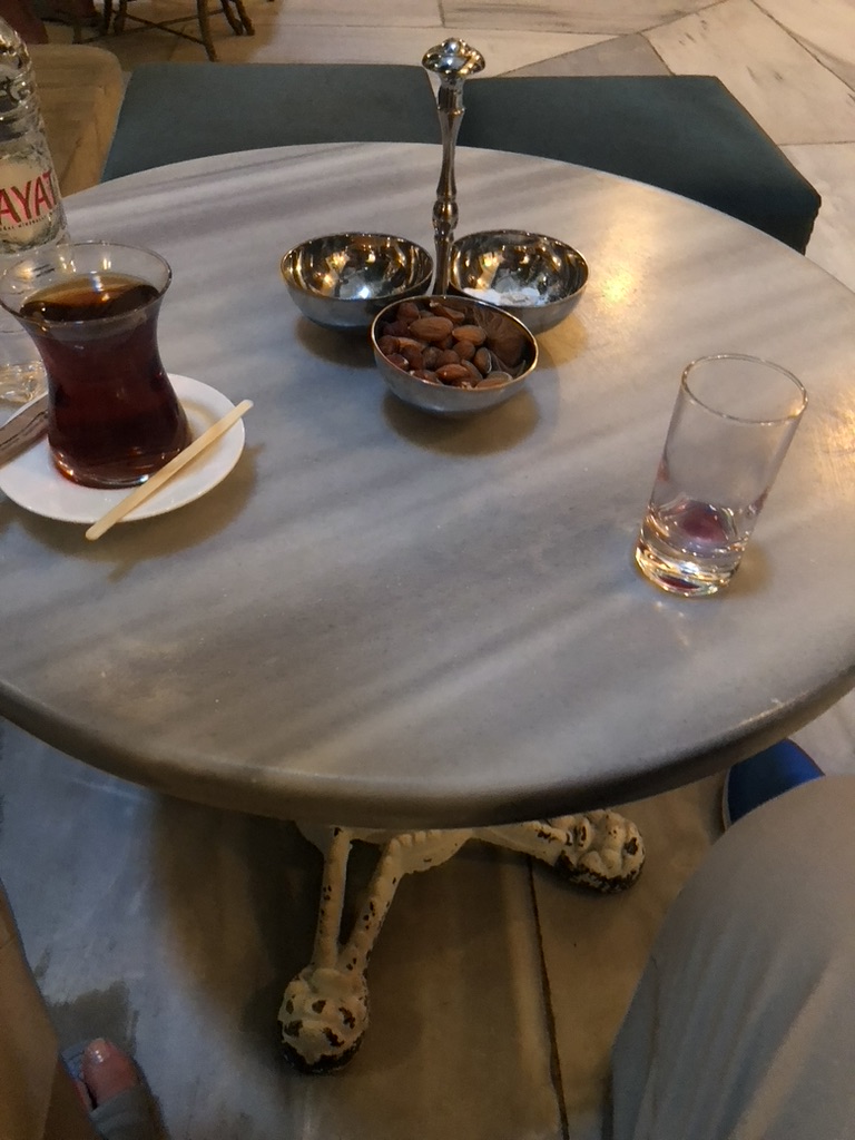 Finally, I decided to head back down the hill to the ferry terminal. Here, I made the trip back to Sultanahmet via ferry and tram, and settled down at my accommodation for an hour of rest. That evening, I had a treat for myself – a rather luxurious experience at a hammam! I arrived at the bathhouse, and was shown to a small room where I was told to strip off (completely!), and put on slippers and a thin cotton towel called a ‘peshtamel’. Then, I was led into the bathhouse itself, where I spent 20 minutes in a marble sauna room, at the end of which I felt practically swimming in my own sweat. This was followed by the more intriguing of the hammam experiences – I had a bucket of hot water thrown on me, before I was lay down on a marble slab and scrubbed head to toe by a large Turkish gentleman. Then, I had alternating buckets of hot water and freezing cold water thrown on me, before finally I was told to dry off and wait outside. Here (still in my peshtamel!), I was given tea, sherbet and Turkish delight, before I finally retreated back to the small room that my clothes were locked in, and headed home for the night. All in all, this was a fascinating experience – it wasn’t anything like a relaxing massage, but I did feel very clean afterwards!