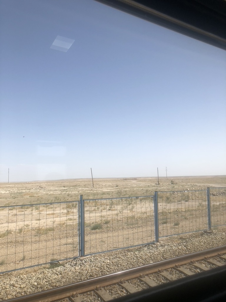 To get from Samarkand to Bukhara, I had decided to forgo the comfort of the Afrosiyob train in favour of the Soviet-built Sharq train, both so I could leave Samarkand later, and so that I could experience some historical Soviet engineering. I left the guesthouse at around 11:00am, and caught a Yandex to Samarkand station, where I was treated to the usual round of ticket stamping, passport checking, and bag scanning. I finally figured out that the train was leaving from platform 3, and so I made my way over just in time to see the train arrive. The Sharq trains really do have a Soviet feel about them, from the coat of arms displayed on the exterior of the carriages, to the beige coloured walls in common areas. Unfortunately, this one did not come equipped with functioning air-conditioning. With the temperature hovering around the low 40ºs, this wasn’t all that comfortable! Finally, the train began ambling away from the station, beginning its journey to Bukhara.