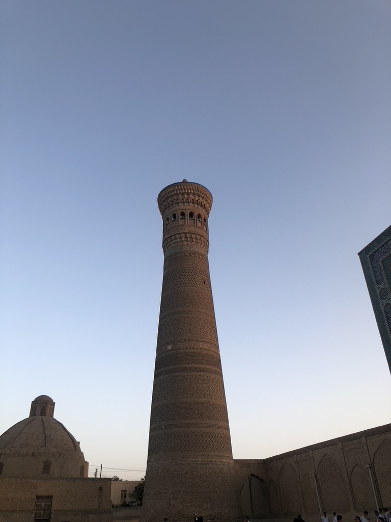 I was lucky enough to see a stork and its nest on top of one of the minarets at Chor Minor! Apparently, they were once incredibly common, but as water sources in Bukhara dried up in the mid-to-late 20th century, the birds disappeared too. I then wandered towards the Poi Kalyan ensemble, the site of the Kalyan Minaret, hoping to see it lit up as the sun went down. The site itself was abuzz with people, as a traditional orchestra played music in the square, and a troupe of dancers made their way from the madrassah to the front of the minaret. It was all very fascinating to watch! I finally drew my eyes away, and walked back to the accommodation for some much needed rest.