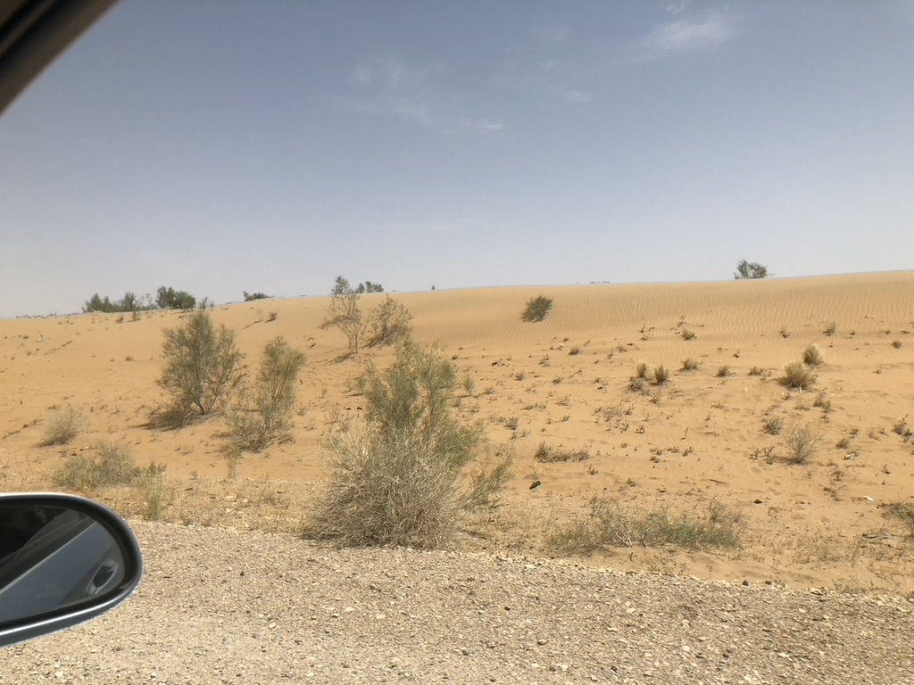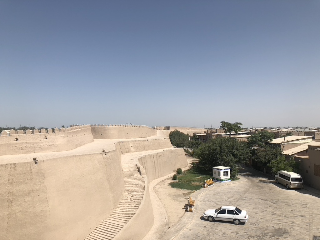 I woke up this morning, ate breakfast, and made sure that I was ready to depart for Khiva. There are several ways to get from Bukhara to Khiva, including a train line, private drivers, shared taxis, and marshrutkas. I had spoken to the guy who ran the place I had stayed at in Bukhara, who knew someone who was driving from Bukhara to Khiva that day, Nazrullo, who would be happy to take me with him, and would even detour by some of the Khorezm fortresses dotted around the desert. I met Nazrullo outside the accommodation, and we walked over to his car, where I was just about able to cram my bag into the boot, which was taken up by an obscenely large natural gas tank. The first 2 hours or so of our drive was spent laughing at the state of roadworks (a similar theme in every country it seems!), and spotting the odd camel on the side of the road. Nazrullo spoke no English, and my Russian and Uzbek combination was not the most effective, but we did manage to communicate somewhat, which was good!