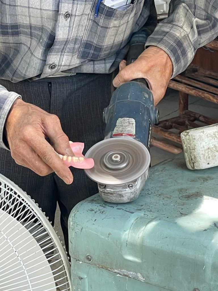 Next up, we walked towards the ancient Citadel at the centre of Shiraz. Before we got there, however, we came across one of the oddest things I have ever seen – a man on the street, with an angle grinder, shaping a set of dentures. The owner of the dentures, an elderly gentleman sat opposite, waved us over to say hello, and in broken English commented on the hilarity of the denture-carving. I did manage to take some photos, just so you can all share in the comedy!