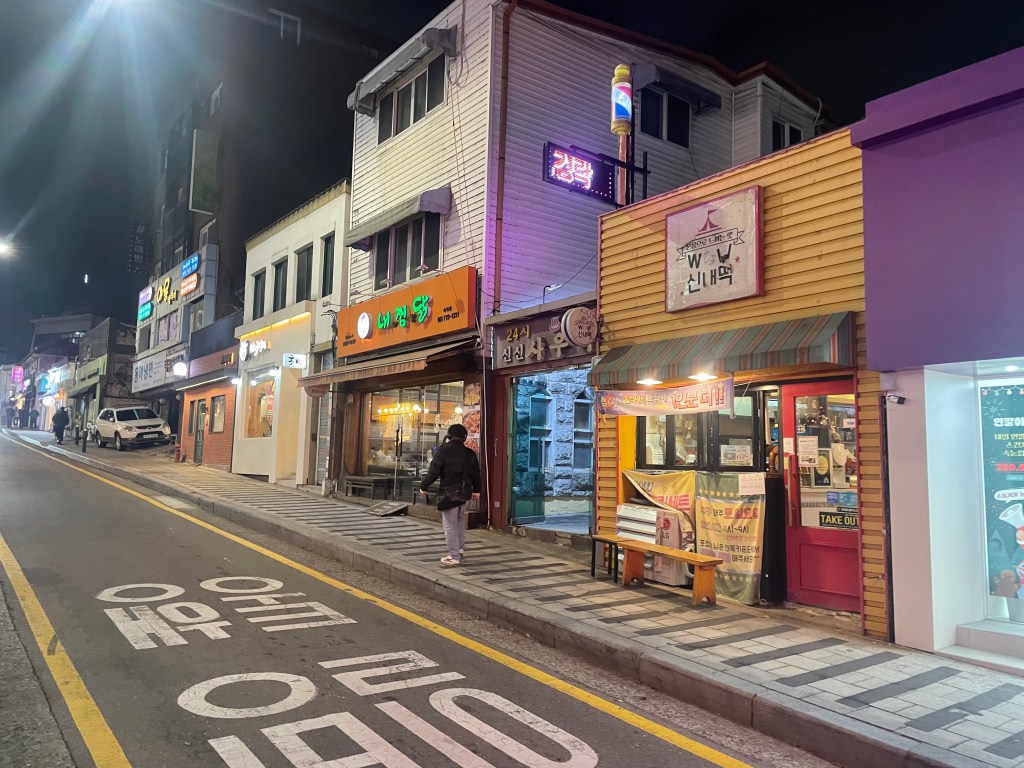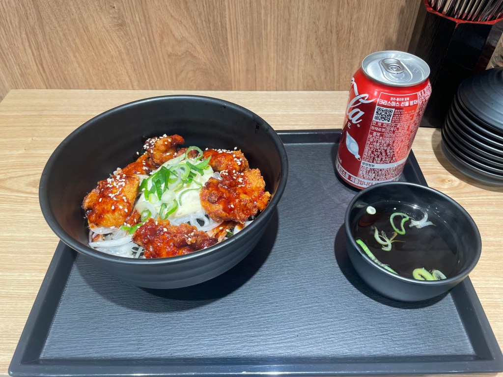 After quite some time wandering around, lost in my own world, the sun began to set, and I decided to find some food. I quickly spotted a small Korean restaurant on a street corner that was quite busy, and stepped inside. Lots of places in Seoul have an electronic ordering system, a touchscreen at the front of the counter with the menu, where you can order and pay. This is really useful in spots where people don’t speak English, as it means that you’re able to order without too much hassle! Some spicy chicken, rice, and seaweed made it my way about 10 minutes later, and I felt like I was in food heaven! Finally, once I had licked my bowl clean (metaphorically, of course), I headed back on the metro to Yeongdeungpo.