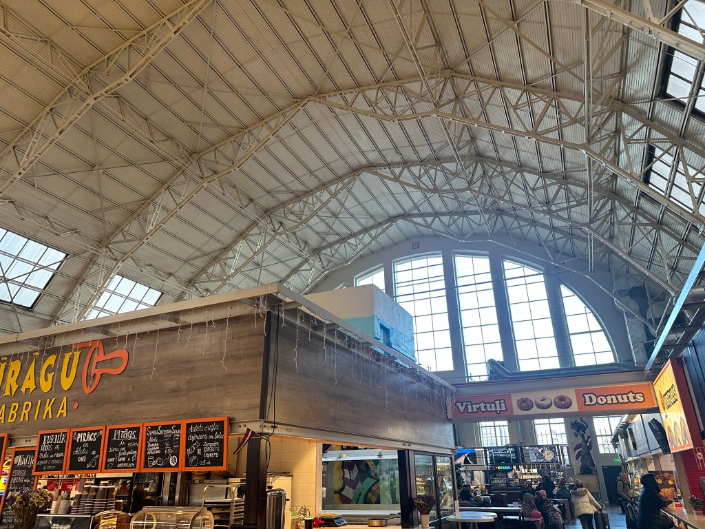 After leaving the Jewish Museum, we walked towards Riga’s Central Markets. This complex is actually the largest market in Europe – would you believe that! – and it is housed in a series of old Zepplin hangars. The markets are immense, although not all of the stalls are currently being used – apparently the rise of shopping centres in Riga is having an effect on trade. Spread across five different hangars, the markets have places for fresh fruit and vegetables, meat, fish, and one labelled as the ‘Gastronomy Pavilion’, which housed a large number of food stands – the smells here were fantastic!