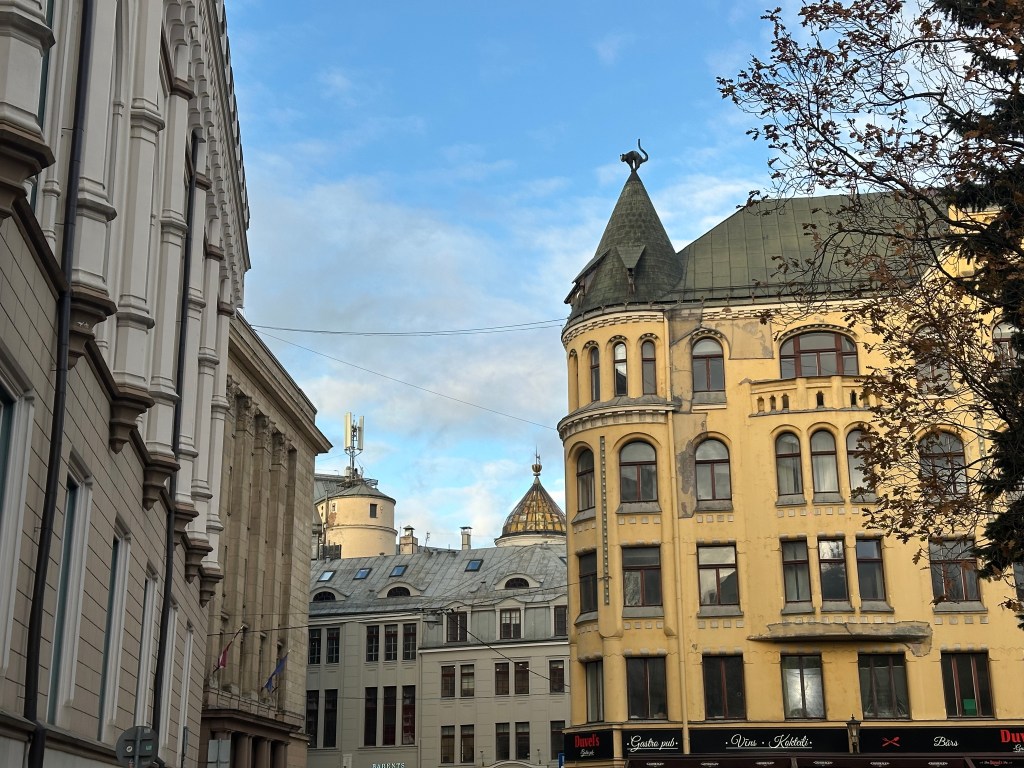 After the bustling crowds at the Central Markets, we headed off to the much more relaxed Centrs neighbourhood, located in the northern part of the city. This district is famous for its Art Nouveau architecture, and did not disappoint in that respect – there were some streets on which you could quickly convince yourself that you were in Paris! The giveaways were the width of the streets, and the general cleanliness – Riga, along with its Baltic neighbours, was incredibly tidy and well-kept.