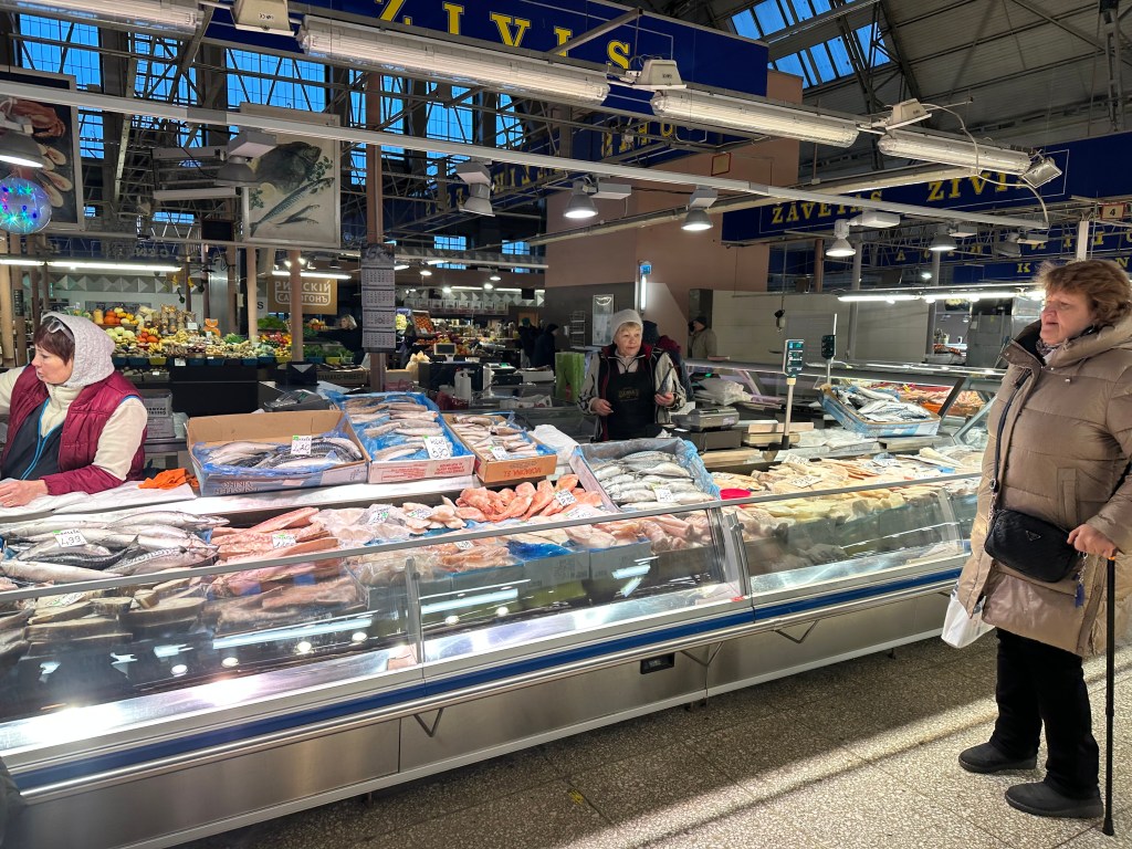 The roof of the Central Market’s Gastronomy Pavilion, a stall selling pickled varieties of every foodstuff you could possibly imagine, and some fresh fish for sale (the animated older lady behind the counter went to great pains to explain to me in Russian that it was Norwegian mackerel)