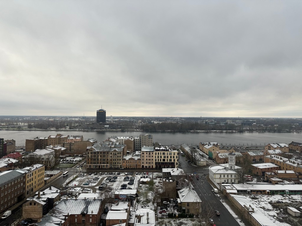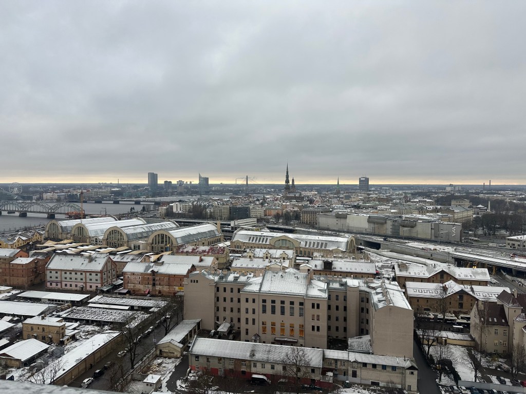 We’d decided to spend our next day in Riga primarily on the other side of the river, to get a feel for the neighbourhoods out that way. First, however, was a stop at the nearby Academy of Sciences, where we’d discovered an observation deck open to the public! It had snowed overnight, and the views from the top of the tower were incredible.
