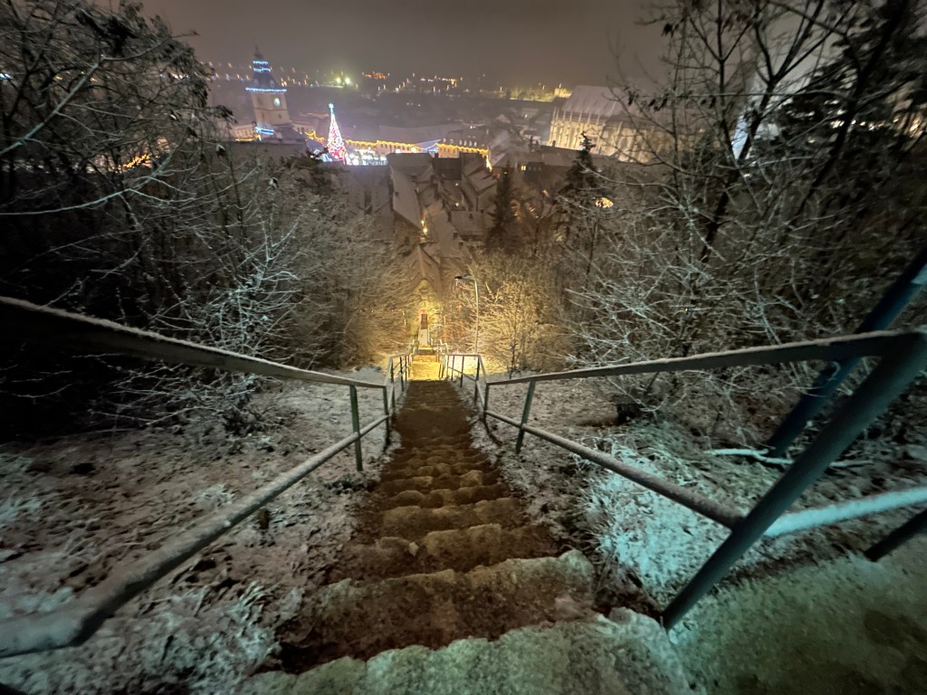 As the sun began to inch its way towards the horizon, we headed out for Brasov’s Black and White towers, remnants of forts which were used to guard Brasov from hostile would-be invaders. The Black Tower is a little smaller, but provides some impressive views over the city, and is slightly easier to get to – the White Tower is located up a very steep set of stairs, but gives you a different, higher angle view over Brasov. We stopped at both, watching on as Brasov was lit up in a golden hue.