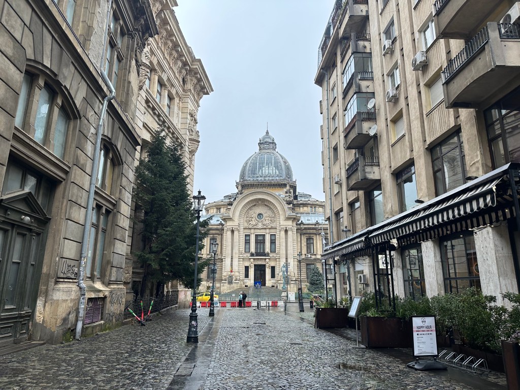 We made our way to Bucharest’s old town centre, home to several major sites including the Stavropoleos monastery, built in the late 1700s, and the rather iconic Palace of Deposits and Conseignments (or its short name, the CEC Bank), with its glass dome and renaissance-style facade.