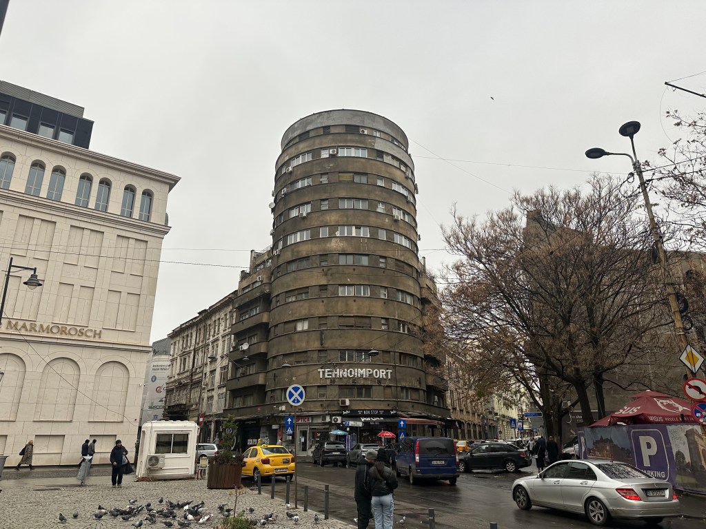 Bucharest’s finest fur coat store, and the infamous (or iconic!) Tehnoimport building