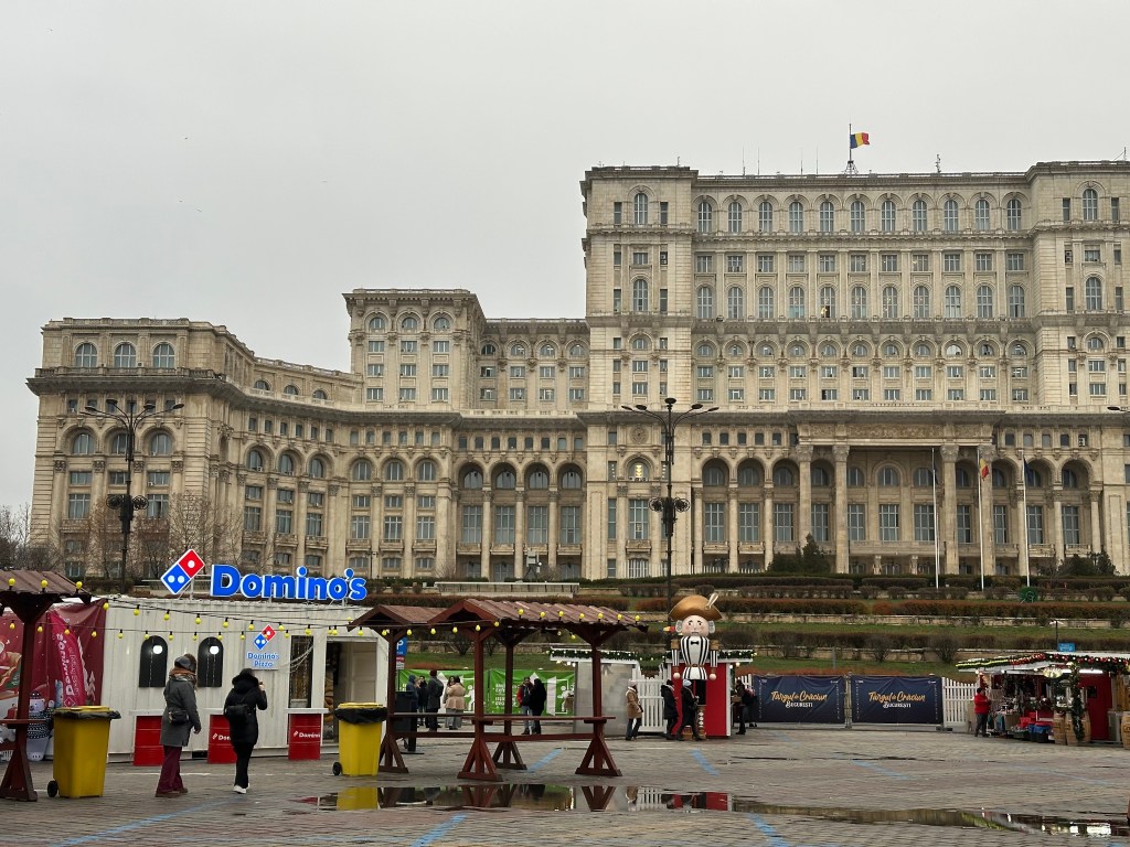 Palace of the Parliament in the daytime – I very much enjoyed the contrast with the Domino’s Pizza van in front of the Communist-era Palace!