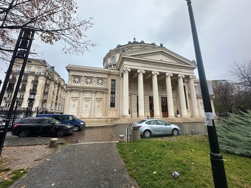 The next morning, we were off out for our first day of exploration in Bucharest. The weather did not help the city’s aesthetics at all – being grey and overcast helped emphasise the grey and concrete-y streets that are found across the city. Bucharest saw significant construction works during the Ceausescu regime – the 1977 earthquake provided him the opportunity to shape the city into what he believed was the epitome of a Socialist utopia, which in some ways came across as a bit of an urban hell.