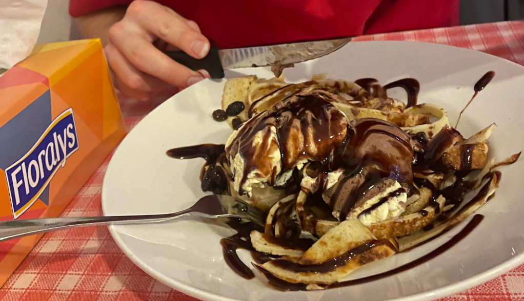 That evening, we headed to a traditional Romanian restaurant we had discovered online – the place was decked out like an old Romanian living room, and there were pictures around the place of the owner’s father, who had been a footballer in Romania during the Communist era. The pancake-style dessert was incredible!