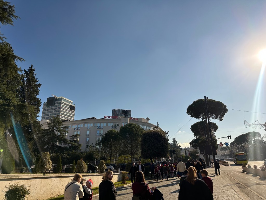 By the time we made the return journey down the mountainside, it was getting dark, and so we headed back into Skanderbeg Square, where the Christmas markets were now in full swing. Restaurants had set up outdoor terrace areas in the square, there were carnival rides and attractions, and most importantly, there were masses of people! It was really entertaining, and pretty cool to see everything lit up!