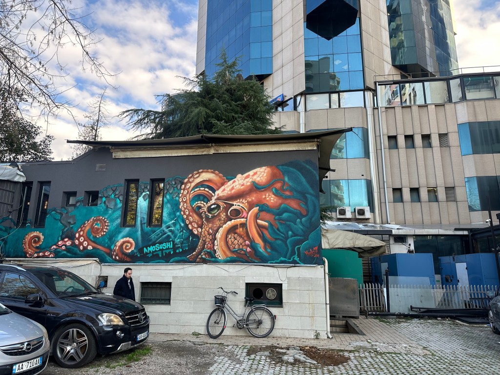 We continued walking through the streets, searching for one in particular. Free Ukraine Street, renamed after the Russian invasion of Ukraine in 2022, was actually home to the Russian Embassy in Tirana – the city authorities changed the street name, and painted the pavement in the yellow and blue colours of the Ukrainian flag as an act of protest. It meant that all mail being sent to the Embassy would have the words ‘Free Ukraine’ written on the envelopes! Unsurprisingly, the Russians opted to move their embassy to a new location in the city – but the authorities decided to keep the name of the street, and maintain the painted pavements! Interestingly, Free Ukraine street is also home to some other consular buildings – the Embassy of Serbia and the Embassy of Kosovo sit right next door to each other. I wonder if there are any tense moments at the coffeeshop across the road?