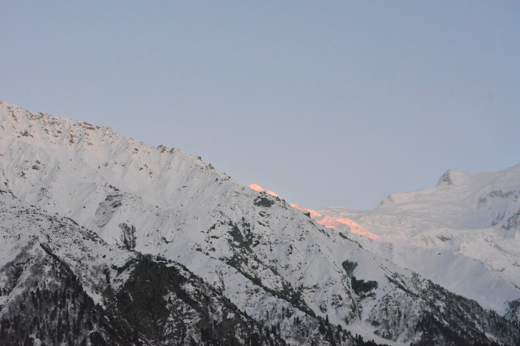 We’d intended to hike up to Beyal Camp, and onward to Nanga Parbat Base Camp, but it became clear quite quickly that weather conditions were not going to permit that – despite the 16º temperatures in Gilgit that morning, Fairy Meadows was below zero, and the snow was too thick to get much further up. Not a worry though, as we contented ourselves with the incredible views across the mountainous landscape, acclimatising to the altitude, and getting progressively colder as the sun began to set. Dinner was provided by Broadview, a selection of curries, rice, and bread served in their dining room, with direct line-of-sight views to Nanga Parbat’s peak. After taking a few photos of the mountain lit up in the moonlight, we headed to bed for what would be a freezing night once out fire extinguished itself in the middle of the night!