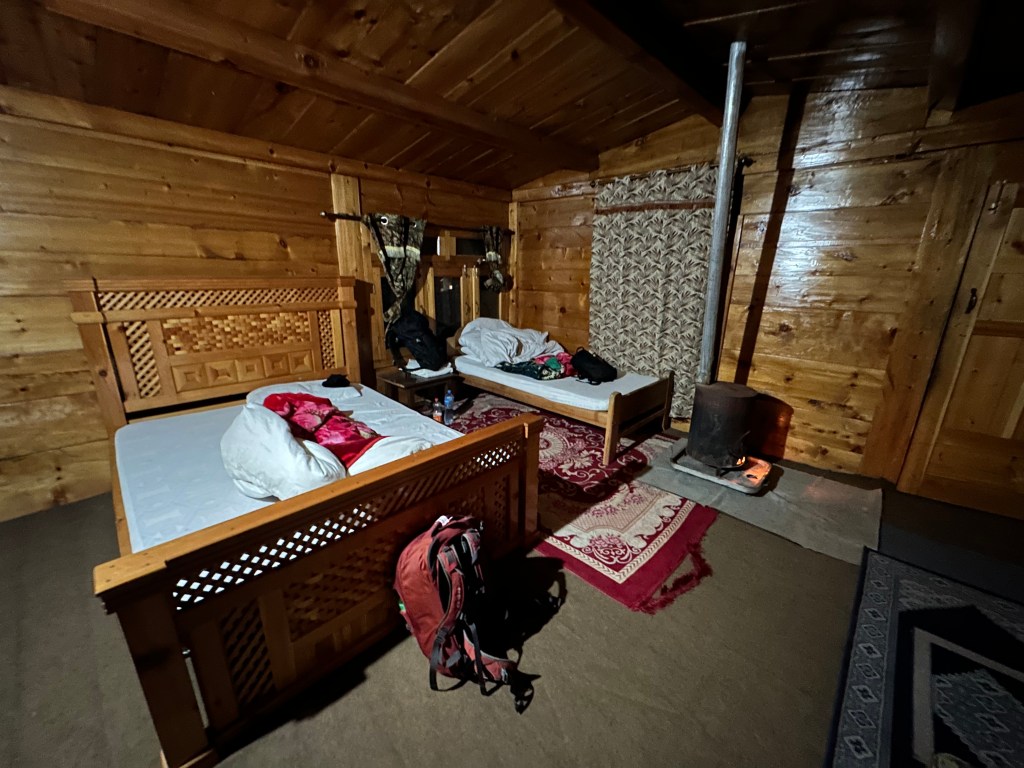 Eventually, after several hours, we finally made it to Fairy Meadows, a spot nestled into the mountains with an immense view of Nanga Parbat, the ninth tallest mountain in the world. It has to be one of the best views I have ever had in my life! We walked around, and eventually found the Broadview Hotel site, spoke to the manager, and were shown to a room. The log cabins are cosy, heated by a fire inside, and for 10000PKR, including breakfast, pretty decent value.