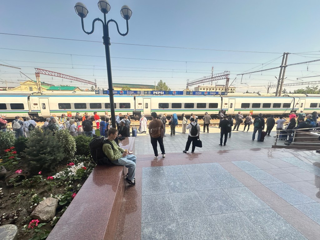 Boarding the Afrosiyob in Samarkand