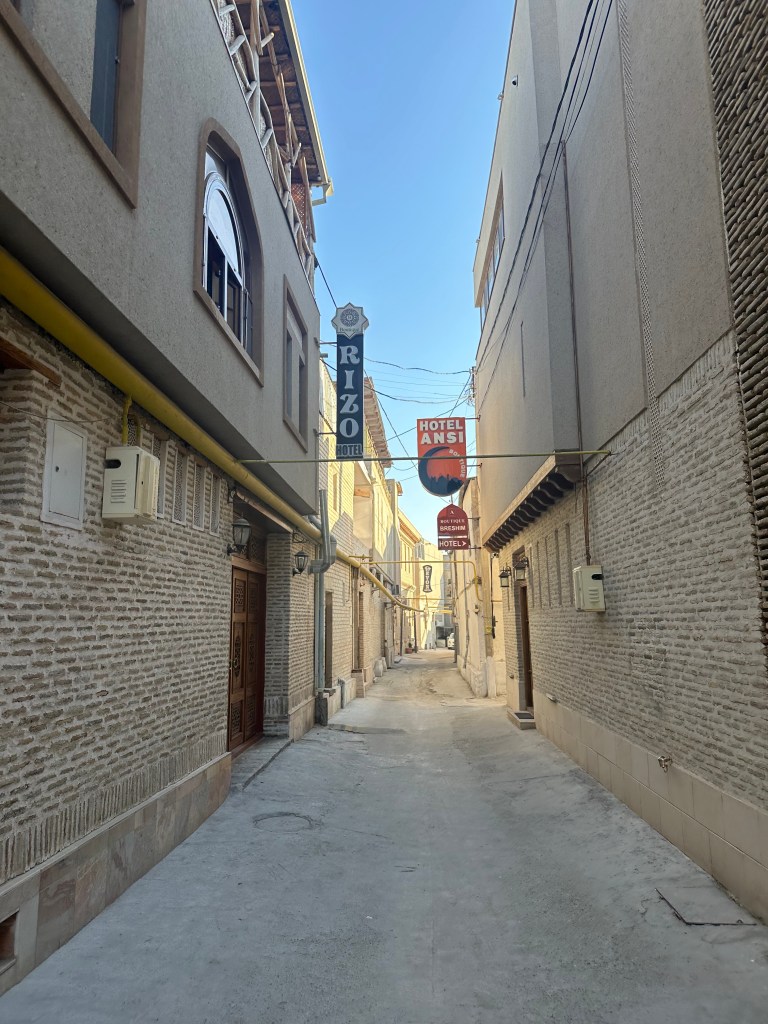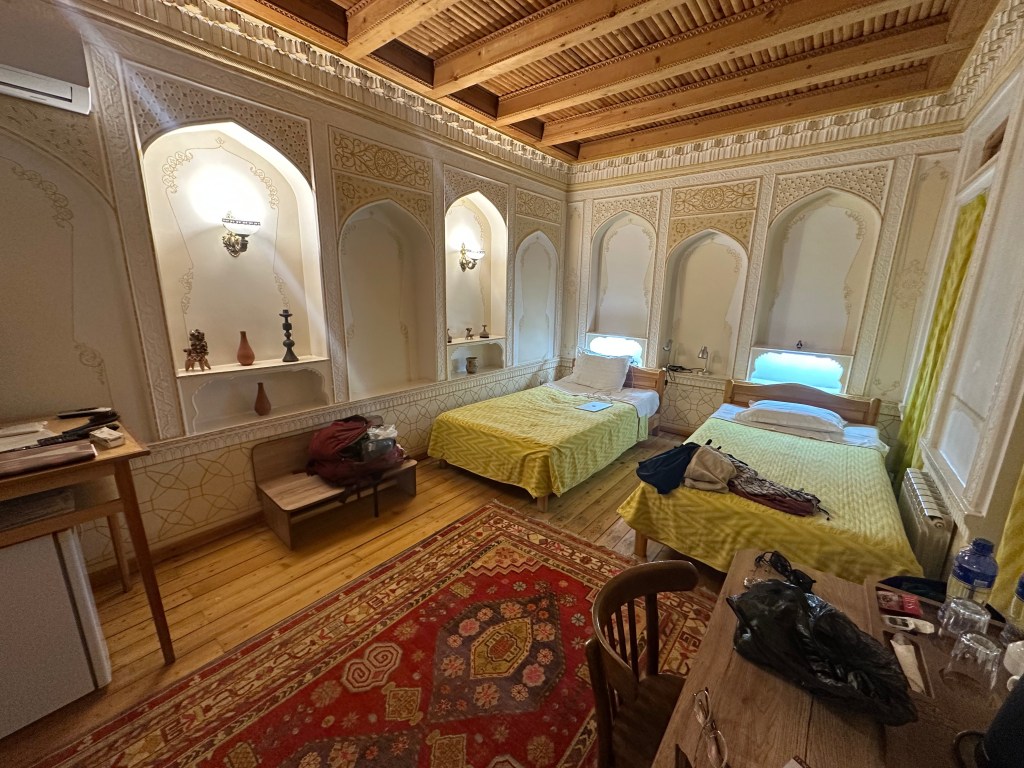 After arriving in Bukhara, I took a Yandex into the Old Town, where I had booked a room for the night at a new place called Minzifa. This hotel, like many others in Bukhara’s centre, is housed in a lovely old building, and the rooms are beautifully crafted with traditional furnishings – it really was a lovely place to stay!