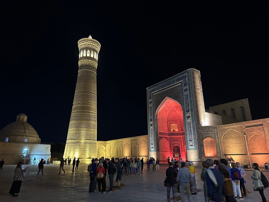 After dinner, I wandered over to the Kaylon Minaret – the square beautifully illuminated as always! What I couldn’t get over, however, was the sheer number of tourists! Even throughout the day, the streets of Old Bukhara were absolutely packed – obviously it was high season, which I hadn’t yet experienced in Uzbekistan, but it was also clear that the country’s enormous tourism campaign was paying dividends.