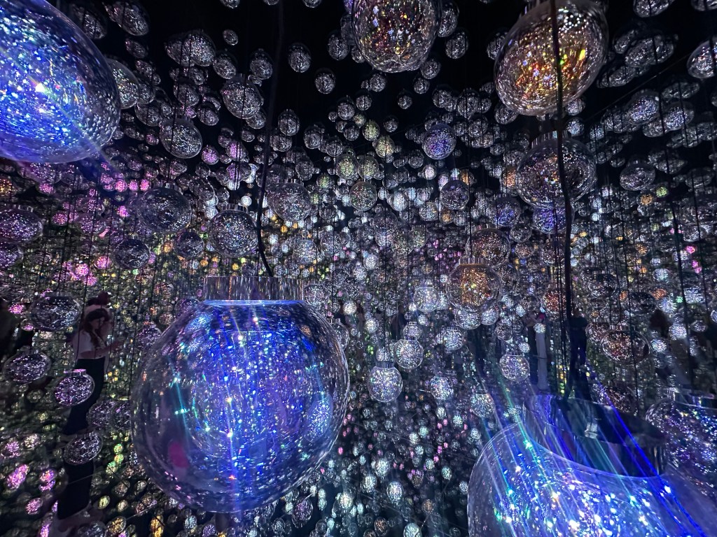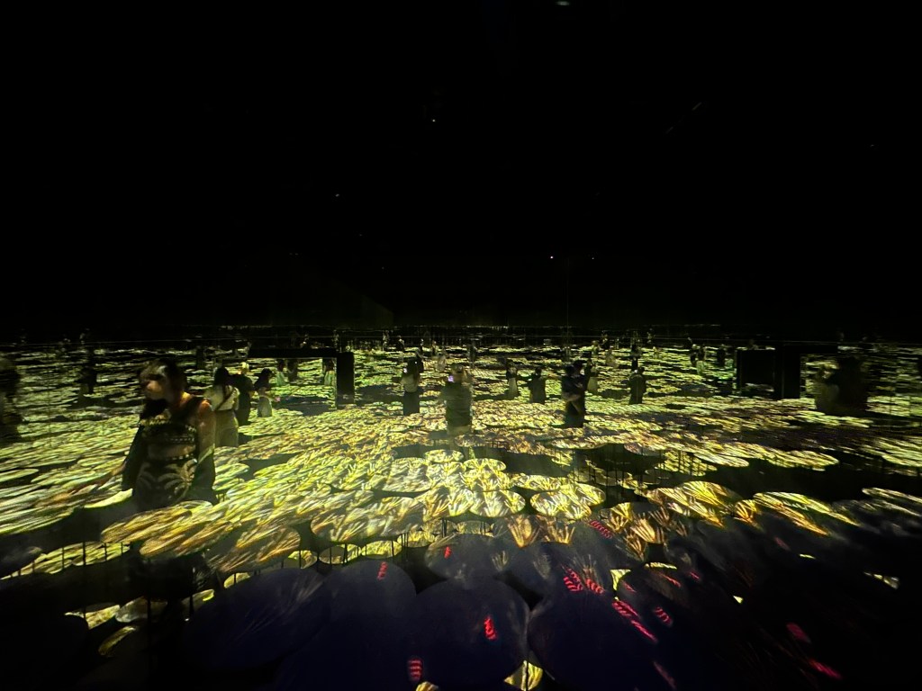 Our last stop on this first-day whirlwind tour of Tokyo was the teamLab Borderless – a digital art museum which uses projections, mirrors, and objects to create an interactive environment you can walk through. It is hard to explain in words exactly how this works – hopefully the pictures below will help!