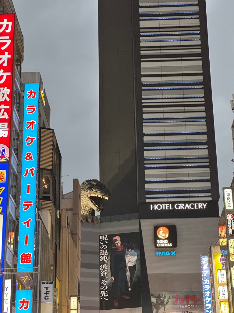 The next day was spent in Nikko (which I’ll cover separately), but on return to Tokyo, we went to explore the lights of Shinjuku, home to such sights as the 3D cat (an enormous curved digital billboard featuring a 3D cat animation), and a statue of Godzilla. Shinjuku is absolutely pumping at night, and felt very much Times Square-esque. I then made my way to Ginza to meet up with a friend, where I stumbled across another Godzilla statue (much smaller than the Shinjuku one, but with a full body!).