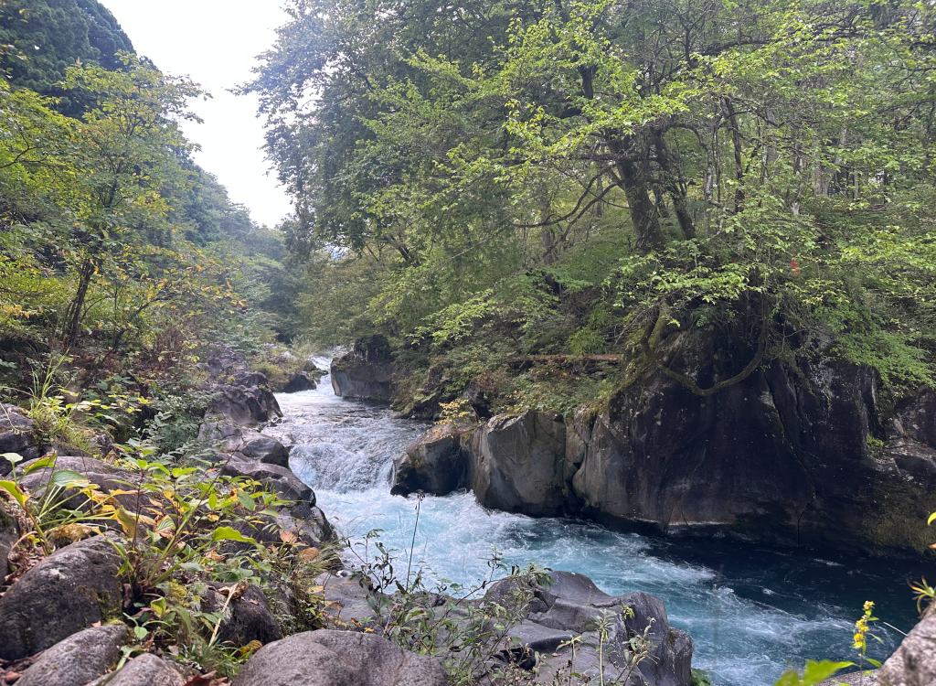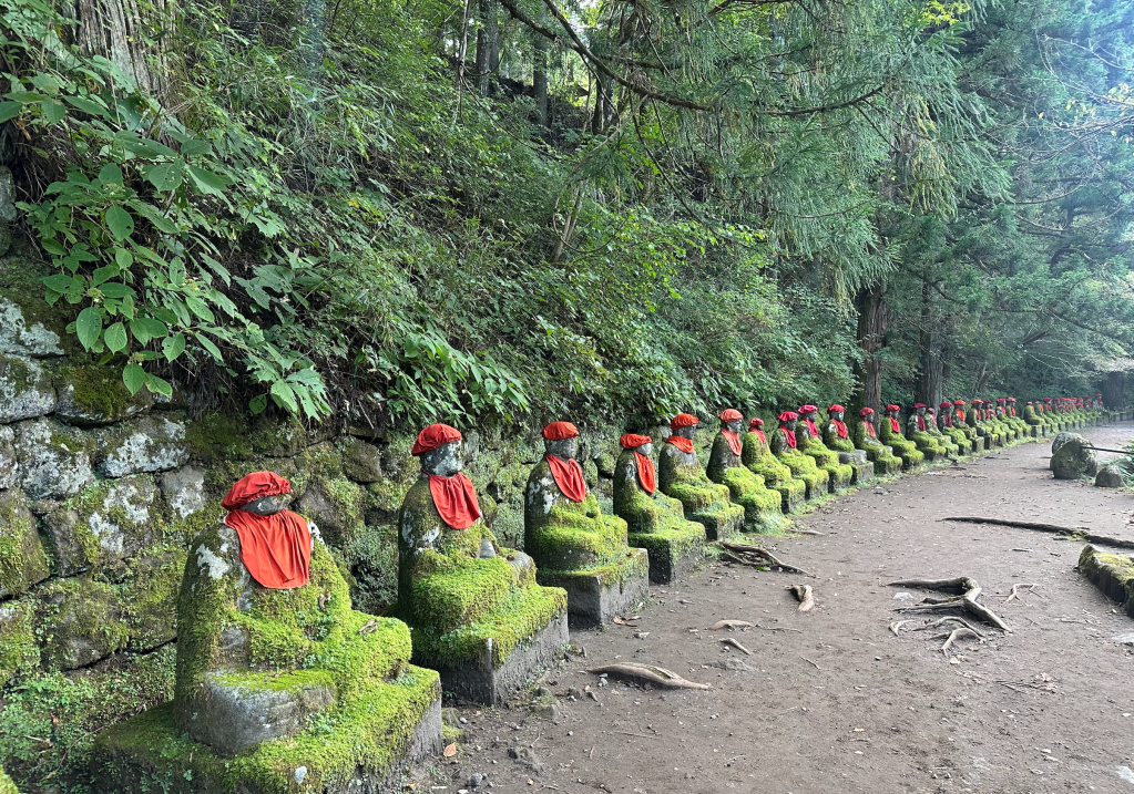 We continued walking away from the town towards our next stop, the Kanmangafuchi Abyss. Here, the Daiya river cuts through the landscape, and the water flows in rapids down the gorge – but the main highlight of the Kanmangafuchi Abyss is the large number of jizo, or Buddhist statues, that line the pathway along the gorge. The red-bib-wearing statues are guardians of children and travellers, amongst others, and according to local legend, cannot be counted (it has been suggested that if you try to count them on your walk up the gorge, and then recount them on your way back, you’ll always end up with a different number!).